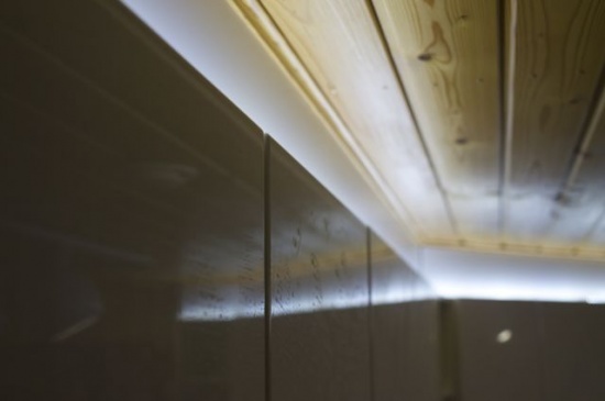 Keittiökaapiston päälle asennettu led-valonauha loistaa kauniisti ja tuo tunnelmallista valoa keittiöön.
