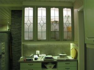 Yksi osa keittiön tunnelmaa on harkittu kohdevalaistus. Kuvan kaappiin on asennettu kalustehalogen, työtasolle tuo valoa led-teippi.